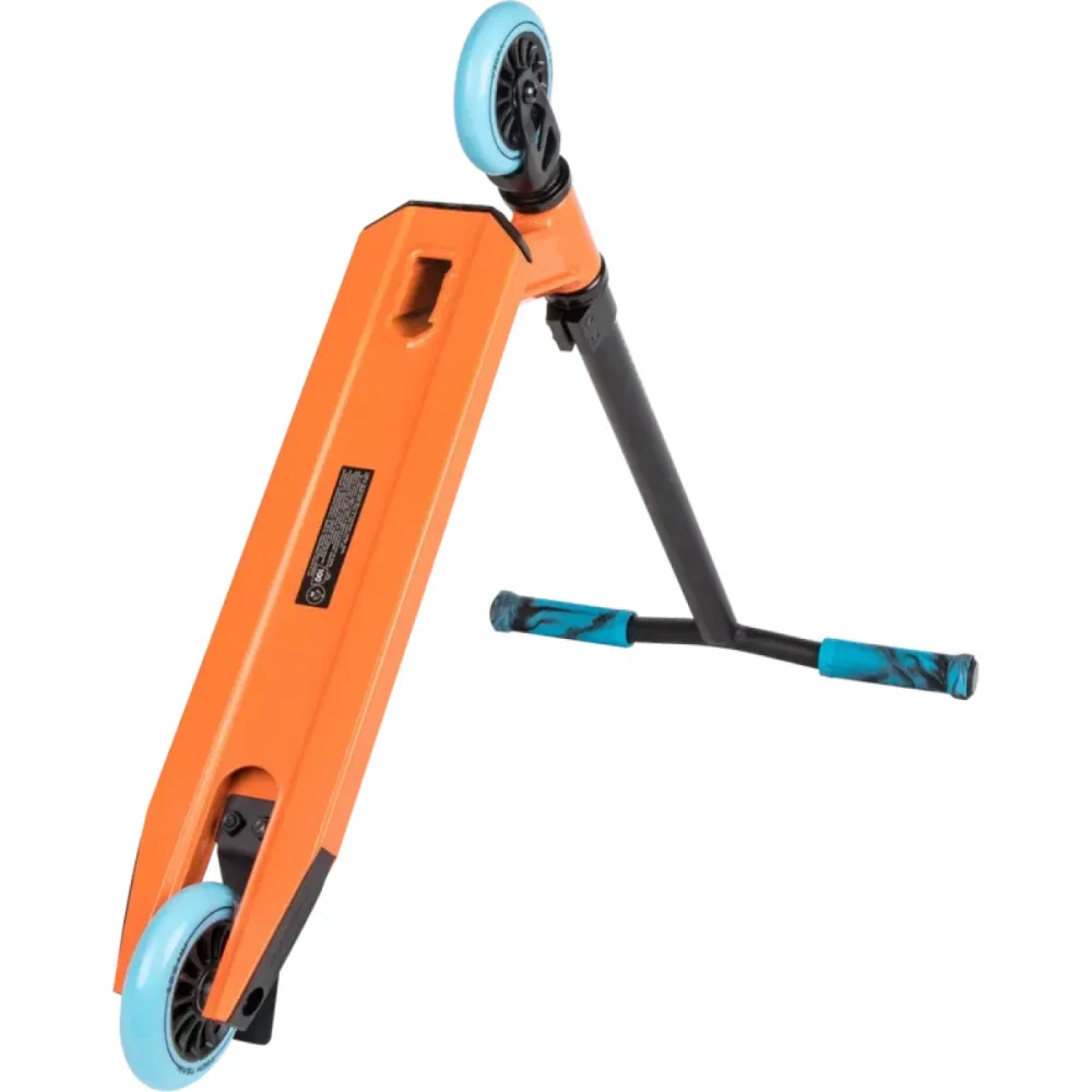 Дека размерами 100 мм по ширине и 450 мм по длине покрыта нескользящей шкуркой, широкая и комфортная. Колеса размером 100 мм и подшипниками ABEC 7 Carbon – накатистые, мало стираемые. Модель предназначена для начального исполнения трюковых элементов. Покупка самоката научит ответственности, внимательности и осторожности. Для эксплуатации техники по максимуму производитель настаивает на приобретении дополнительных аксессуаров безопасности для райдера.