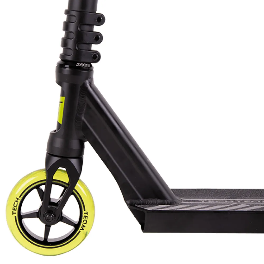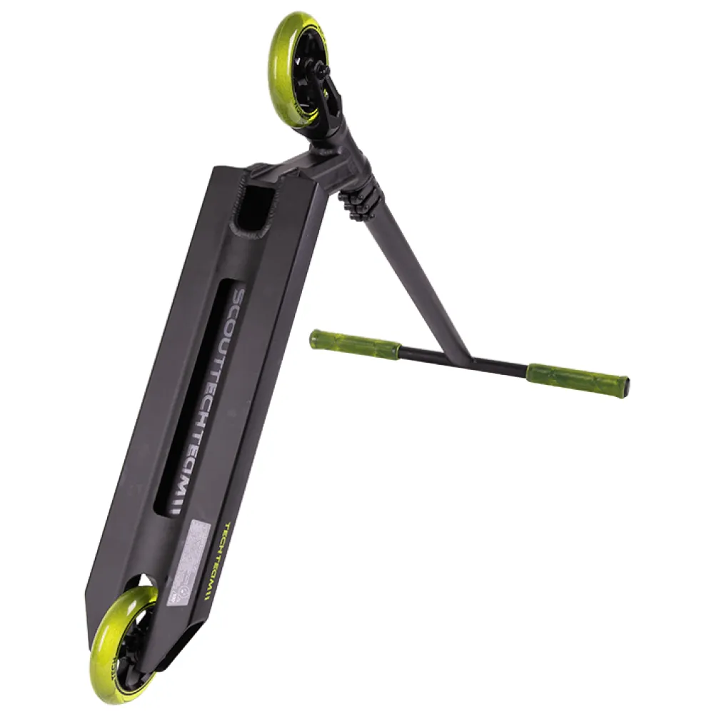 На этапе изготовления компания tech учла ошибки предыдущей линейки. Самокаты tech для начинающих райдеров изготовлены из высокопрочного надежного материала. Парковый самокат имеет алюминиевую деку габаритами 49х12 см с футспейсом 34 см. Оснащенность team scout конкейвом позволяет осваивать трюковые элементы, контролировать действия ездока. Трюковый самокат tech team имеет Т-образную форму руля. Ширина руля составляет 54см. Высоты руля от зажима (61,5 см) достаточно для ездоков начального уровня. Базовая модель techteam scout оснащена накатистыми полиуретановыми колесами с металлическим сердечником, промышленными подшипниками Abec 9. Каждый из трюковых элементов гарантирует максимальный разгон, важный для каждого трюкача.